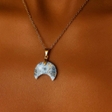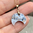 This dendritic agate moon pendant is truly one of a kind — available in only one piece.Its natural pattern, formed over time by mineral inclusions, creates a unique inner landscape that cannot be replicated.