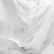 Szczegóły: • Kamień: różowy rubin • Materiał łańcuszka: stal chirurgiczna • Regulowana długość • Trwałe, odporne na śniedzenie wykończenie