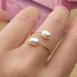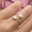 A delicate adjustable ring crafted from fine golden stainless steel, adorned with a white freshwater pearl.
