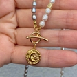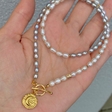 Elegant necklace with white and pink freshwater pearls and a gold-plated surgical steel pendant. Delicate, feminine, and timeless.